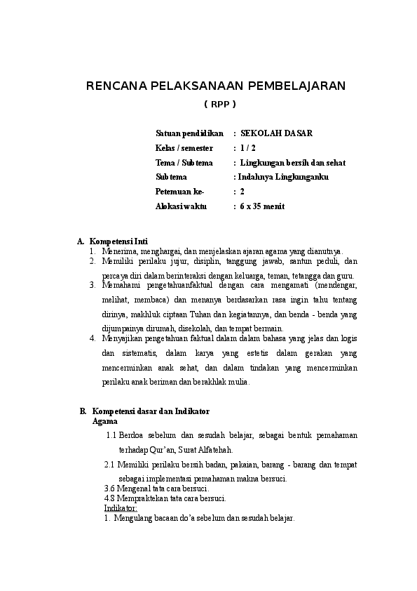 Rencanan pelaksanaan pembelajaranrencanan pelaksanaan pembelajaran (rpp) tematik(rpp) tematik nama sekolah : Ipa mengenal bagian bagian utama tubuh hewan dan tumbuhan, pertumbuhan hewan dan tumbuhan serta berbagai tempat hidup makhluk hidup. Perangkat pembelajaranrencanan pelaksanaan pembelajaran (rpp) tematik nama sekolah tema kelas/semester alokasi waktu. Charta mengenai bagian tubuh, kegunaan bagian tubuh, dan cara merawat tubuh i.