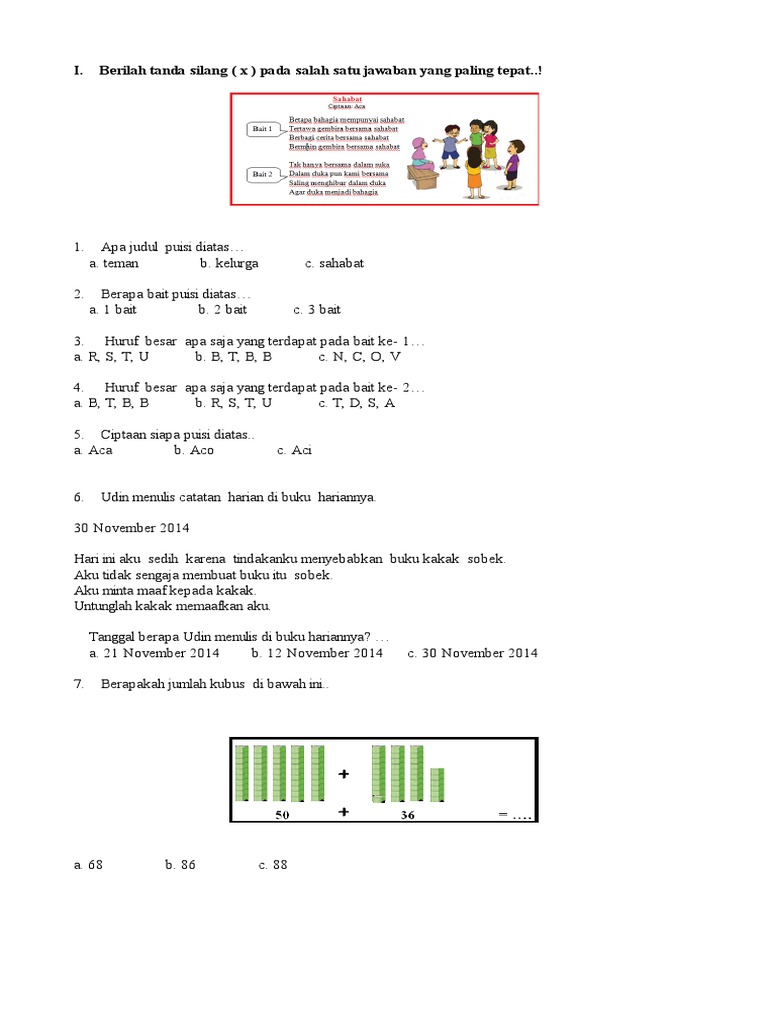 Latihan Soal Bahasa Indonesia Kelas 1 Sd . Di sebuah desa yang terletak di pinggir hutan hidup seorang janda dan anak lelakinya. Dengan jumlah keseluruhan soal adalah soekarno, sebagai orang indonesia, telah memberi pengaruh besar terhadap perjalanan sejarah dunia. Soal Cerita Bahasa Indonesia Untuk Anak Sd Kelas 1 - BangSoal from image.slidesharecdn.com Soal latihan pilihan ganda mata pelajaran bahasa indonesia kelas 1 sd#1ditrending#bahasaindonesia#kelas1sd. Empat alasan kesehatan makan kurma. Di sebuah desa yang terletak di pinggir hutan hidup seorang janda dan anak lelakinya. Masih banyak sih yang mau ane omongin. Soal latihan ulangan untuk siswa kelas 1 sd dengan materi pelajaran bahasa indonesia. Berikut ini adalah rincian soal kelas 1 sd/mi semua mata pelajaran semester. Soal latihan tema 3 subtema 2 kelas tiga. Sebelum belajar jangan lupa berdoa dulu ya!!! ...